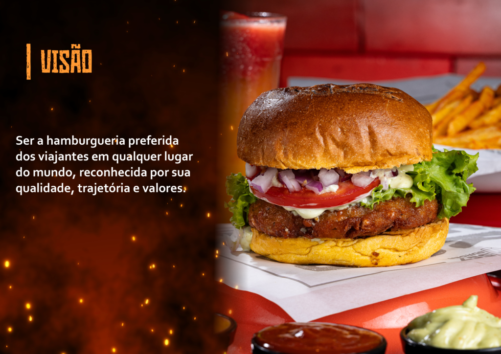 Ser a hamburgueria preferida dos viajantes em qualquer lugar do mundo, reconhecida por sua qualidade, trajetória e valores.
